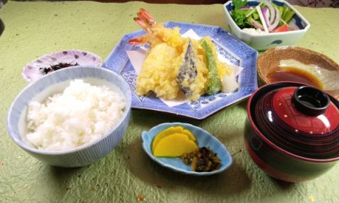 天妇罗套餐 ¥2,200(含税)天妇罗(虾x 3个,茄子,茄子,南瓜,红薯,shishito)小碗/白饭/味噌汤/酱菜/沙拉